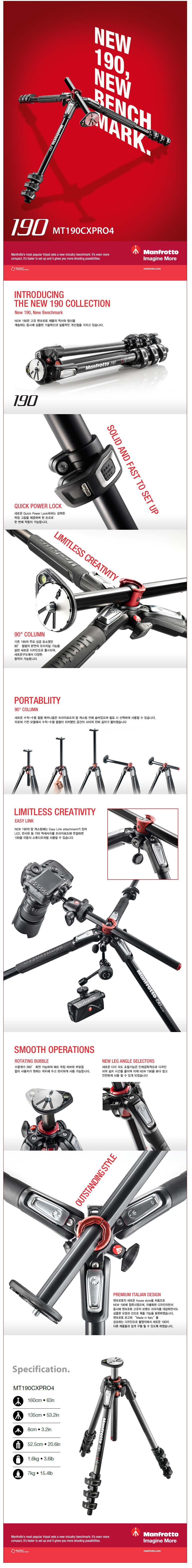 MANFROTTO ¸ÇÇÁ·ÎÅä MT190CXPRO4 Ä«º» 4´Ü