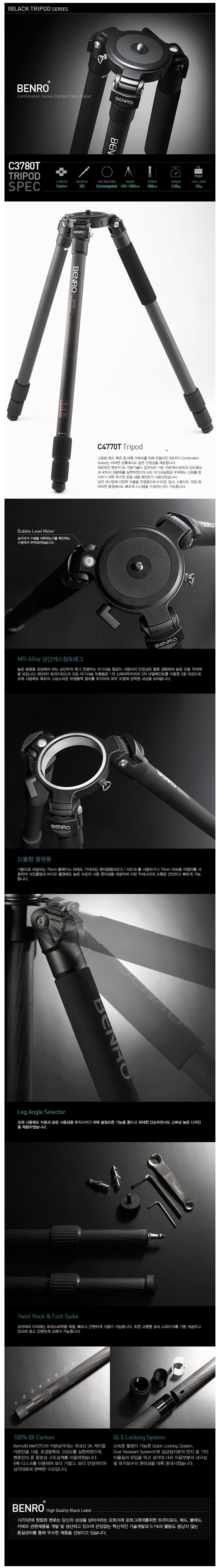Benro ÄÞºñ³×ÀÌ¼Ç ½Ã¸®Áî 3´Ü Ä«º» ÆÄÀ̹ö »ï°¢´ë C4770T