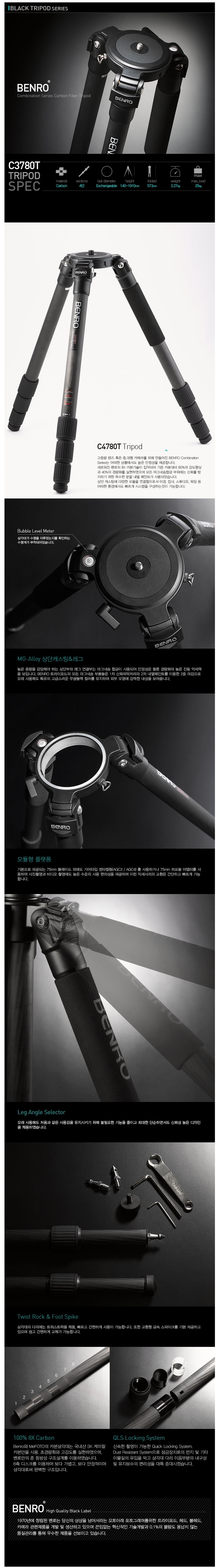 Benro ÄÞºñ³×ÀÌ¼Ç ½Ã¸®Áî 4´Ü Ä«º» ÆÄÀ̹ö »ï°¢´ë C4780T