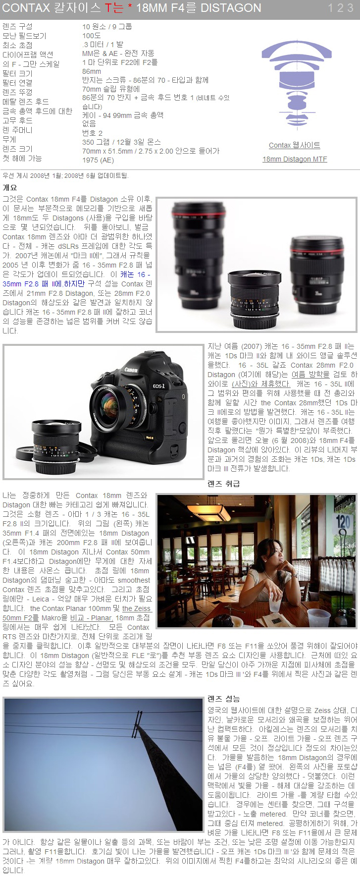 °¡»êÄ«¸Þ¶ó ÄÜŹ½º Contax Carl Zeiss Distagon 18mm F4 T* (Èĵå)