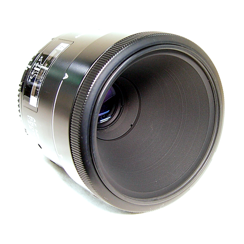 Focal length/Aperture: AF 55mm f/2.8 Lens construction: 6 elements in 5 groups Picture angle: 43¡Æ Diaphragm: Automatic Attachment size: 62mm (P=0.75) Aperture scale: f/2.8 - f/32 on both standard and aperture-direct-readout scales Exposure measurement: Via full aperture method with AI cameras; via stop-down method with non-Ai cameras. Distance scale: Graduated in meters and feet from 0.229m (9 in.) to infinity (OO) Maximum Reproduction ratio(s): Scales provided, 1:1 with lens only Weight: 420g Dimensions: 74mm dia. x 74mm long (overall); 82mm extension from lens flange