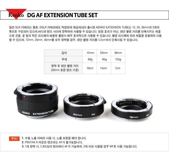 ÄËÄÚ Kenko AF EXTENSION TUBE SET M/AF 12mm, 20mm, 36mm ¼Ò´Ï.¹Ì³îŸ¿ë Á¢»ç¸µ/ 95%