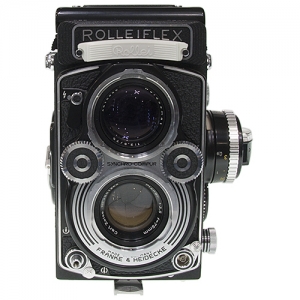 Shutter: Synchro Compur MXV, 1 - 1/500 sec., B, M + X-sync., self timer. Film: 120 for 12 or 24 exp. 6x6, and 35mm adapter Rolleikin 2. Film Transportation: winding lever with auto stop on first exposure, exposure counter for exposures 1-12. Blank film pressure plate. Can come with or without built in exposure metering. Dimensions: 11.2x9.8x14.8cm. Weight: 1,220 grams.