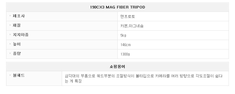 Manfrotto Ä«º» »ï°¢´ë 190CX3 MAG FIBER