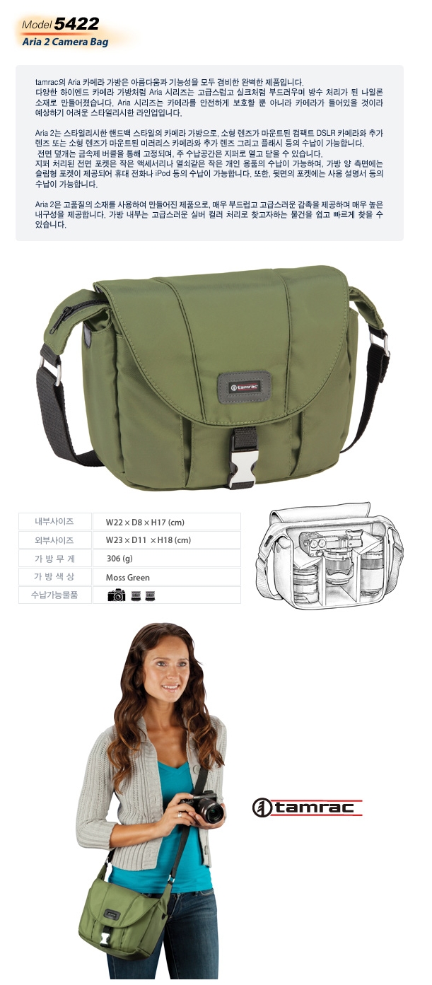 Tamrac 5422 Aria 2 Ä«¸Þ¶ó ¹é Moss Green