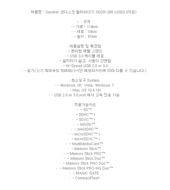 °¡»êÄ«¸Þ¶ó Sandisk ¸ÖƼ¸®´õ±â SDDR-289 (USB3.0Áö¿ø)