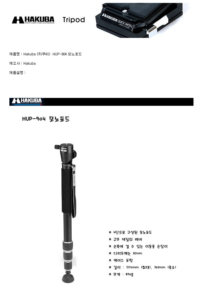 °¡»êÄ«¸Þ¶ó Hakuba HUP-904 ¸ð³ëÆ÷µå (4´Ü)