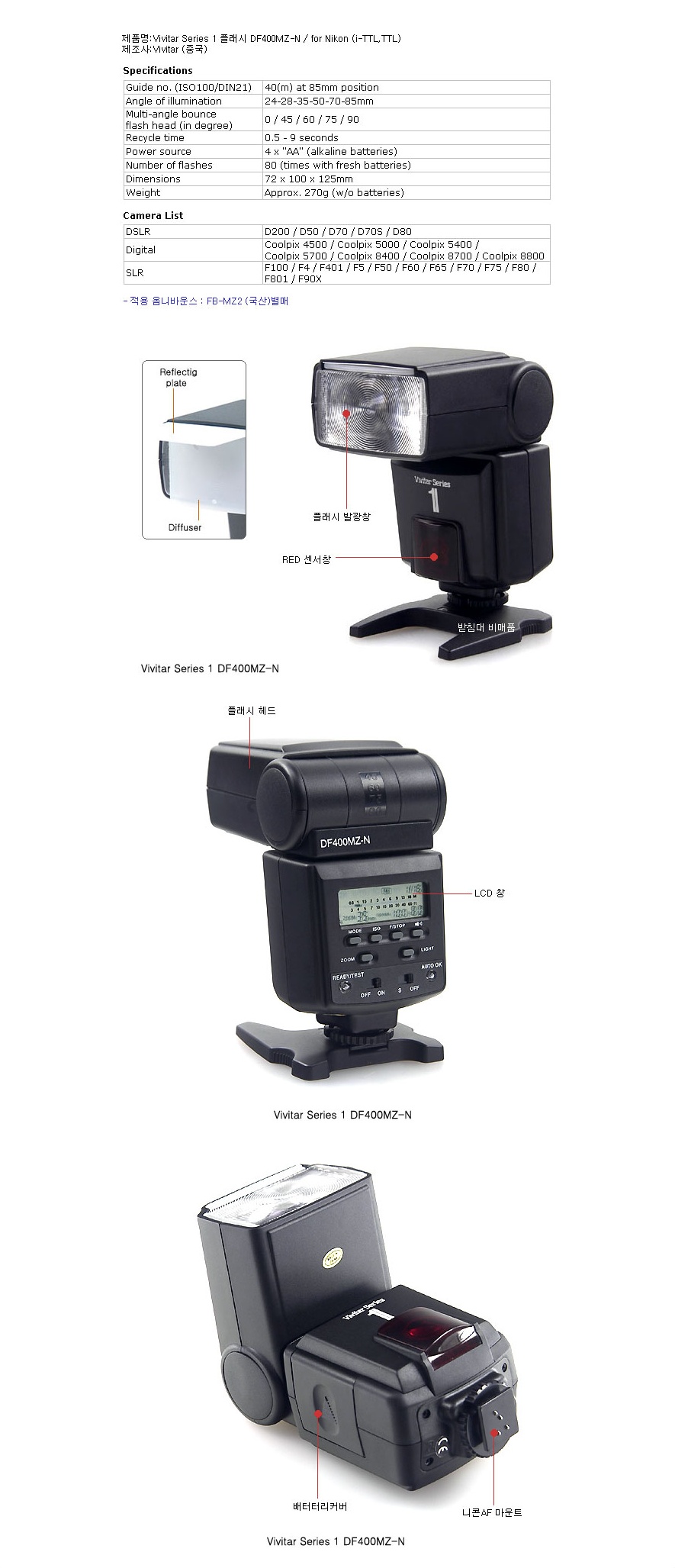 °¡»êÄ«¸Þ¶ó Vivitar S1 Ç÷¡½Ã DF400MZ