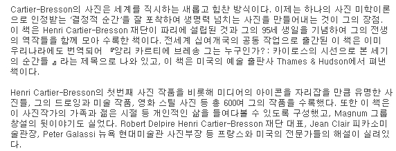This sumptuous collection of work by Cartier-Bresson is the ultimate look at his achievements. The book brims with classic photographs that have become icons of the medium, as well as rarely seen work from all periods of Cartier-Bresson's life, including a number of previously unpublished photographs and a generous selection of drawings, paintings, and film stills. The book also features telling personal souvenirs of his youth, his family, and the founding of Magnum.