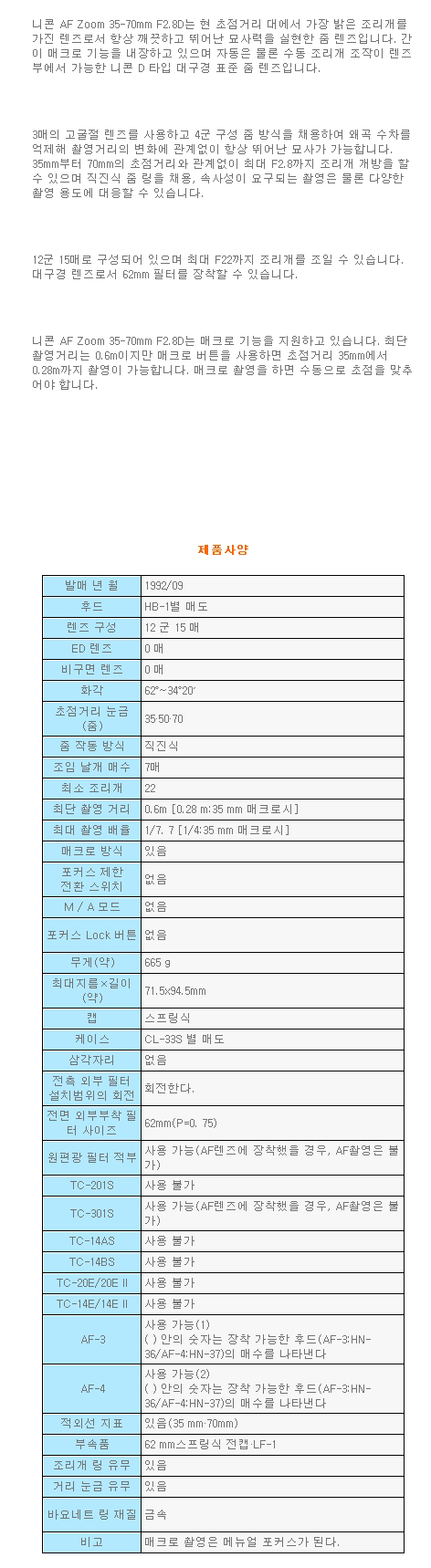 °¡»êÄ«¸Þ¶ó Nikon AF 35-70mm 1:2.8 D