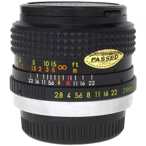 osawa 28mm f/2.8 construction: 7 elements in 6 groups minimum aperture: f22 aperture settings: half stop detentes minimum foucs 30cm filter thread: 52mm lenshood: none dimensions: 41mm long x 60mm diameter weight: 245g mount fittings: FD, MD, AI, OM, PK, M42 |