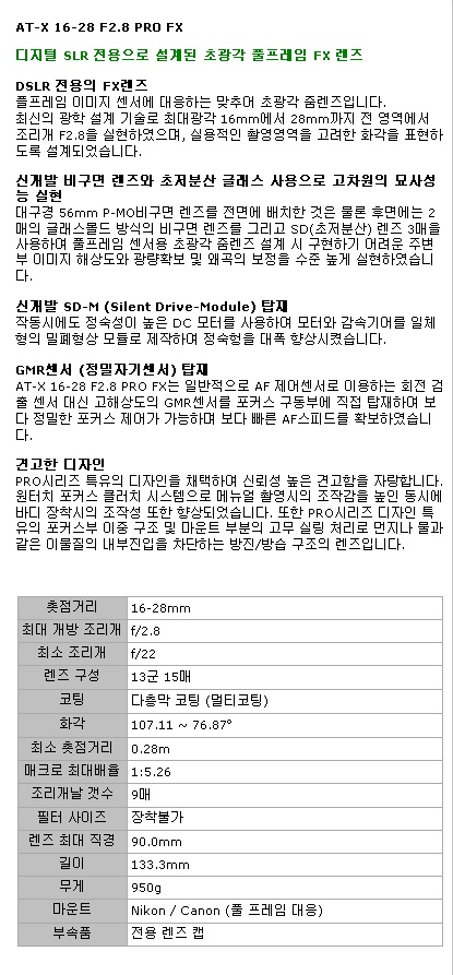 Tokina AT-X 16-28mm F2.8 PRO FX (Á¤Ç° ¹Ú½º) ´ÏÄÜ¿ë [98]