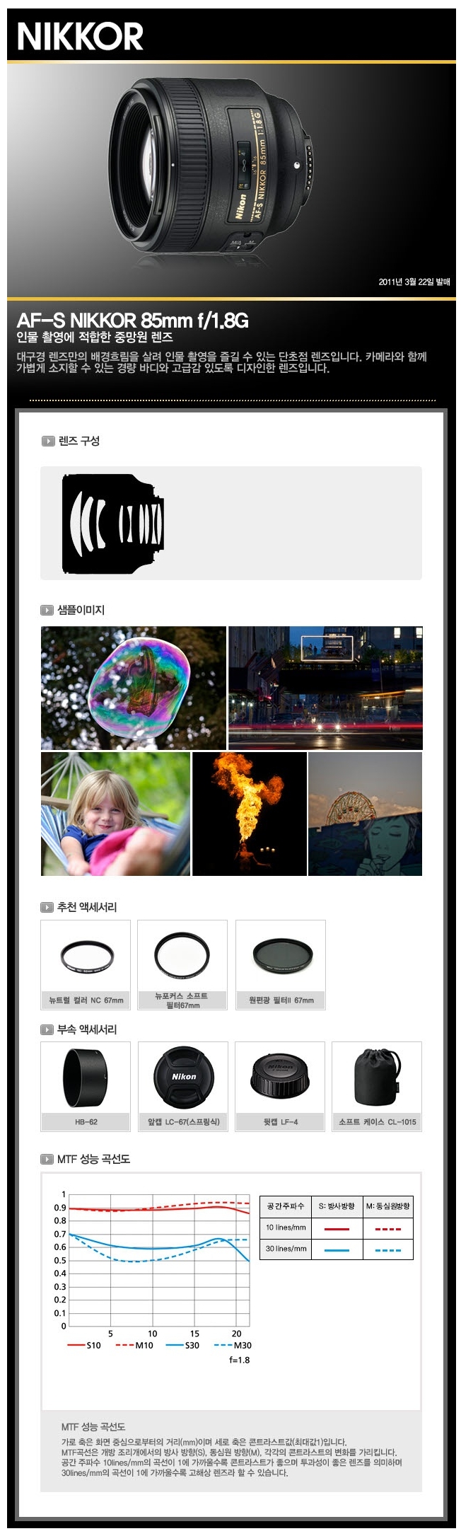 Nikon AF-S NIKKOR 85mm f/1.8G (´ÏÄÜ Á¤Ç°)